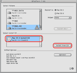 3) Mac OS XのインストールCD-ROMをセットしてから XPostFactoをダブルクリックすると 右のような起動画面が出ます。 しばらく待っても画面が変わらないときは 起動画面をクリックしてください |